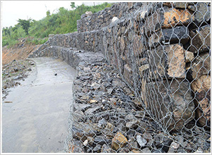 (4)鋅-5%鋁-混合稀土合金鋼絲包塑:在鋅-5%鋁-混合稀土合金鋼絲的表面包一層PVC或PE保護(hù)層,再編織成各種規(guī)格的石籠網(wǎng)。這層保護(hù)層將會(huì)大大增加在高污染環(huán)境中的保護(hù),并且通過(guò)不同顏色的選擇,使其能和周圍環(huán)境融合。